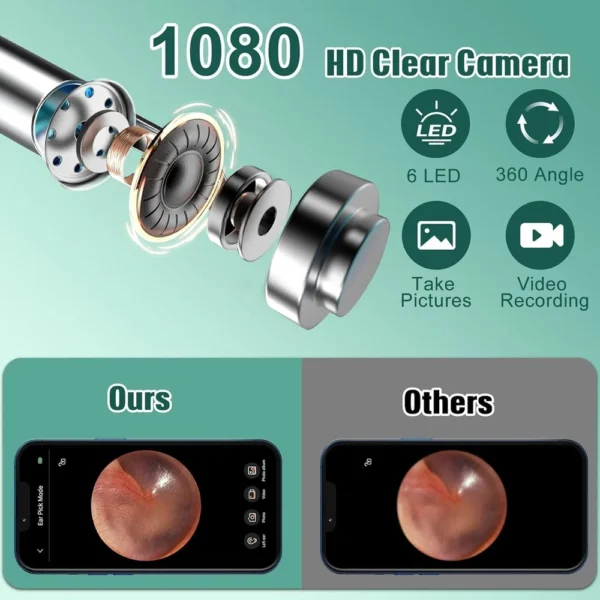 High-Definition Visuals – Equipped with a Wide-Angle HD camera and 6 high-brightness LED lights to fully illuminate the ear canal, providing a crystal-clear view of every corner.